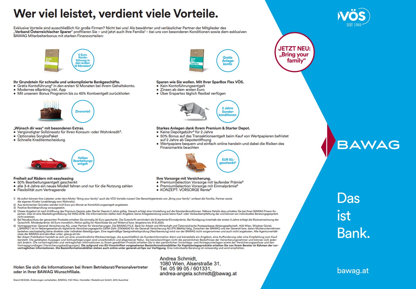 Mitarbeiter:innen Angebote BAWAG Dieser Beitrag wurde am 17. November 2025 von claudiaschadauer in Angebote veröffentlicht. Ähnliche Beiträge