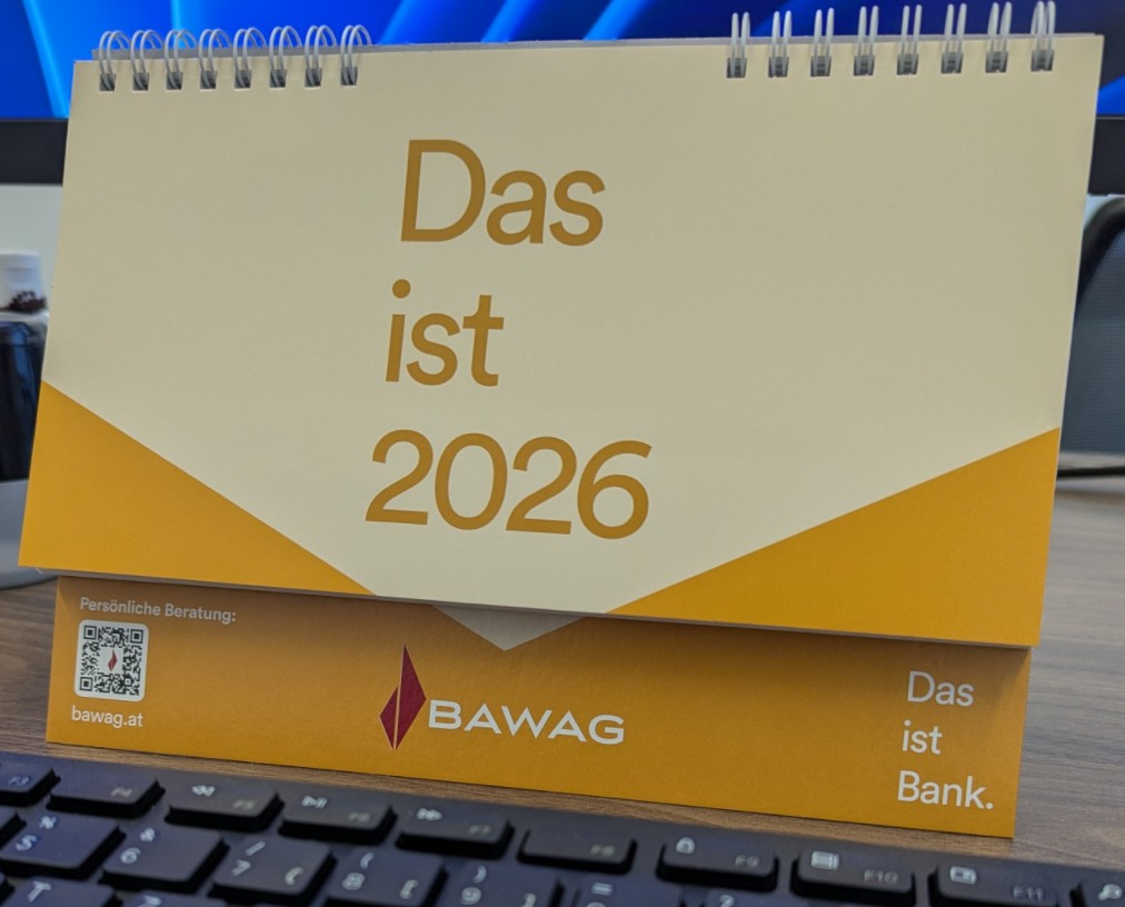 es stehen dank unseres Beraters bei BAWAG (Markus Schrauf) und der Kolleg:innen der Arbeiterkammer wieder Stehkalender für das Jahr 2026 zur Verfügung. Ich bitte um Verständnis, dass maximal 1 Stück pro Person auf B31.15/16 persönlich abgeholt werden kann. Es können keine Kalender reserviert werden.