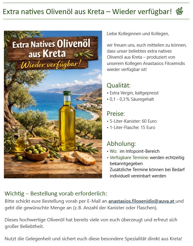Exklusives Mitarbeiterangebot – Olivenöl aus Kreta Dieser Beitrag wurde am 3. April 2026 von karintinhofer in Angebote veröffentlicht. Ähnliche Beiträge
