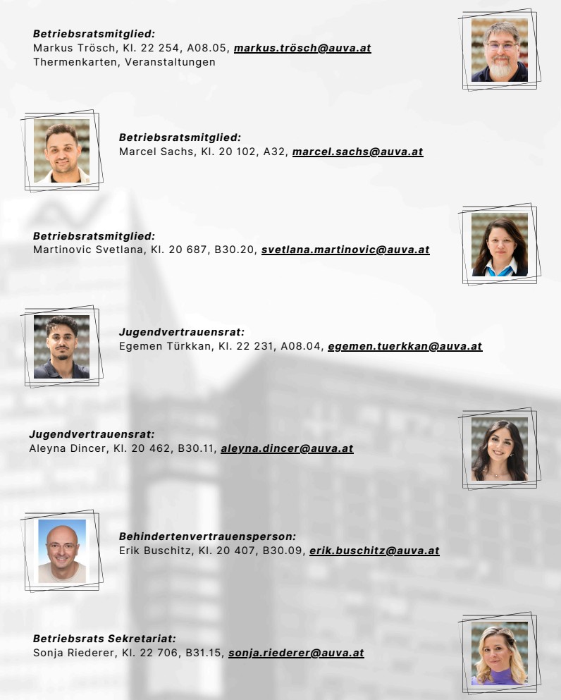 Dieses Blog soll der Kommunikation, Information und Betreuung der Mitarbeiterinnen und Mitarbeiter der AUVA Hauptstelle dienen. Es wird vom Betriebsrat der AUVA Hauptstelle betrieben.